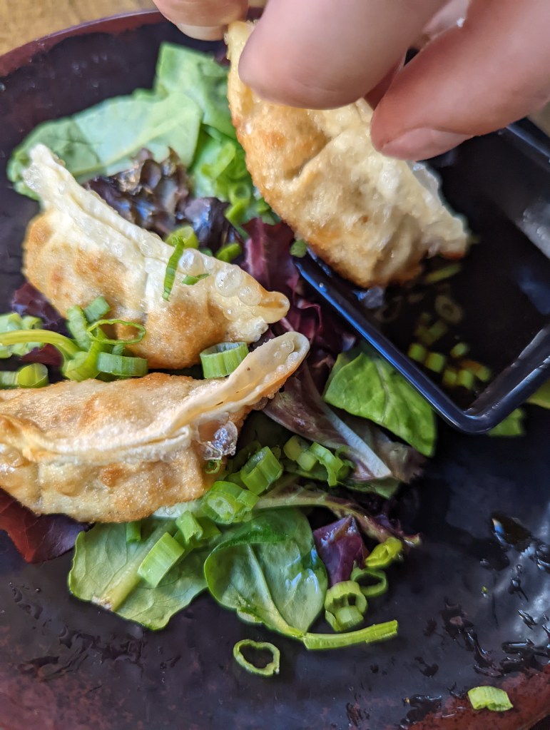 I almost always get the pork gyoza appetizer–they have a ton of delicious and creative starters, and TanTanMen: ramen noodles in a spicy tonkotsu pork broth, ground pork, menma, scallion, Bok choy, soft egg, sesame seeds, itogiri chile threads. Sub Katsu (Panko breaded chicken) and save a few gyoza to add to the bowl. I make mine V spicy as well with their spicy chile oil. Extra broth or extra noodles can be added. My fellow beer fans will appreciate their good draft selection. If you feel like something stronger and are a whiskey fan, I highly recommend the Osaka Smash: High-Rye Bourbon, Shiso Leaf tincture, Lemon, and House-made Ginger Syrup on a big rock.